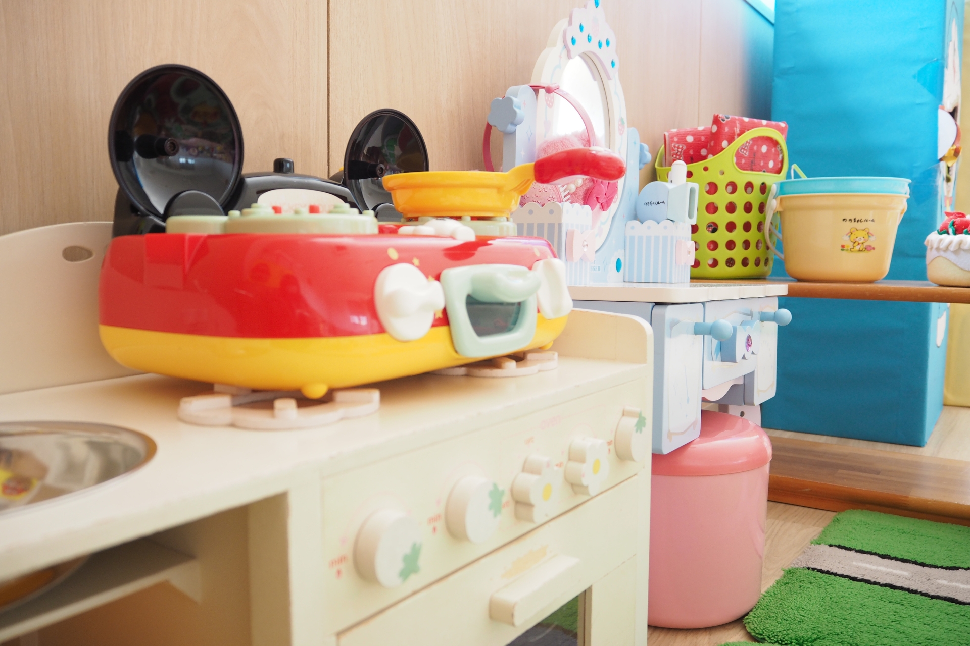 ベビーベッド、ベビージムがありますのでねんねで遊ぶお子様も安心です。